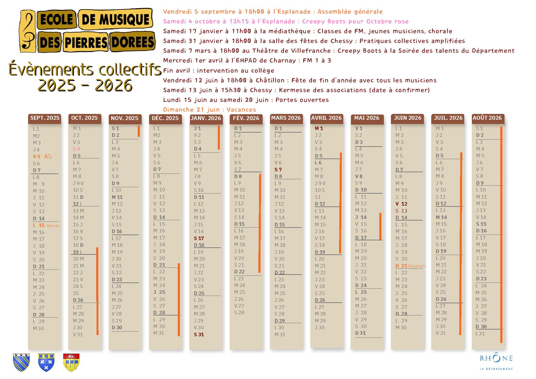 Mairie de Chessy les Mines Actualités École de Musique Des Pierres Dorées Calendrier des évènements collectifs 2025-2026